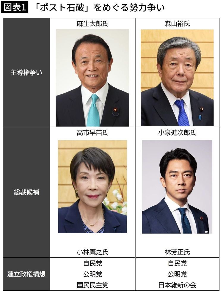 他方、高市さんは有力候補だけど、麻生さんは総理や外相経験から右旋回を危惧している。小泉さんは現閣僚だから、臨時総裁選に石破さんが出馬すると反旗は翻せず、総理への階段は登れなくなる。
