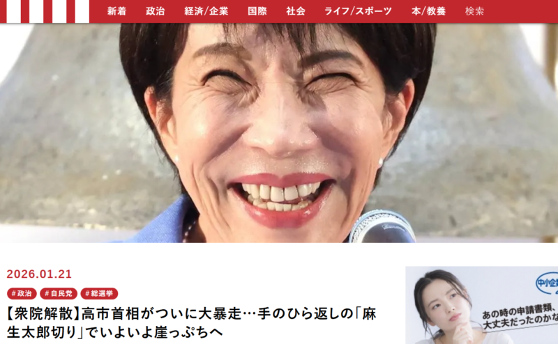 高市さんが衆議院の解散を表明したね。食料品消費税ゼロの部分とか、「国民会議で検討を加速」と微妙な言い回しもあったものの、あれは、財政悪化に対する国債利回りの急上昇とか円安を食い止めるため。あとは高市さんらしい、肝が据わった会見だった👍🏻。(写真:自民党)