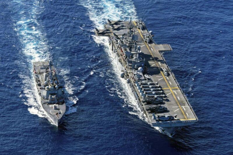 佐世保を母港とする強襲揚陸艦「トリポリ」などが海兵隊やF35戦闘機などを積んで中東に着くまでの時間稼ぎの意味合いもあり、「停戦」と「再攻撃」の両にらみなんだろう。(写真:産経)